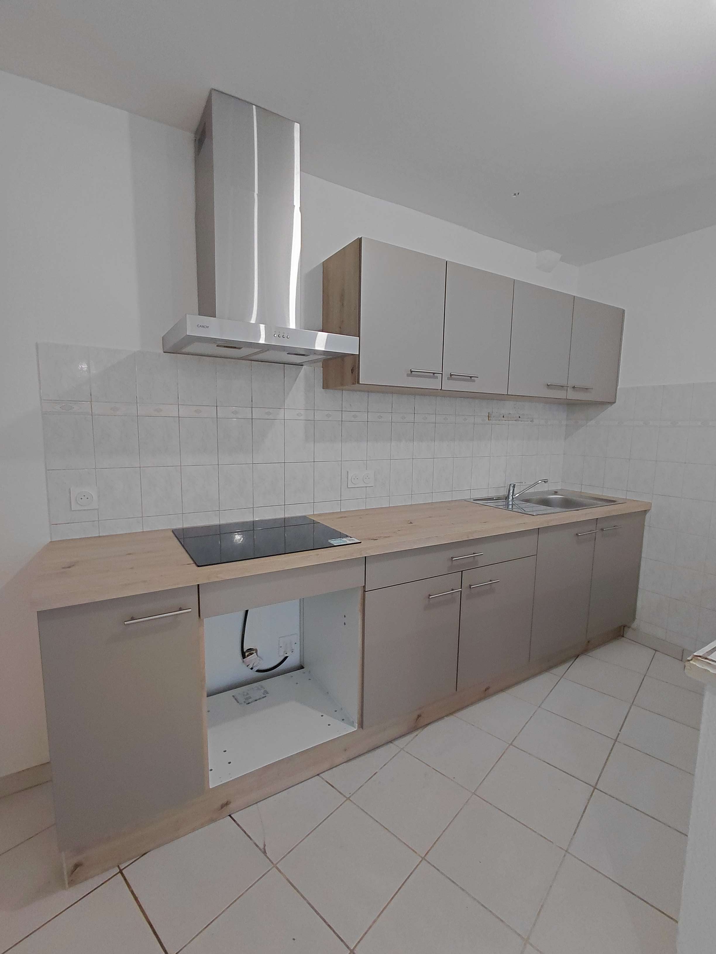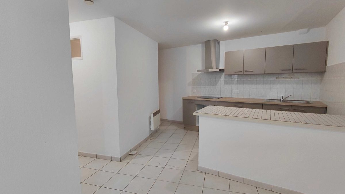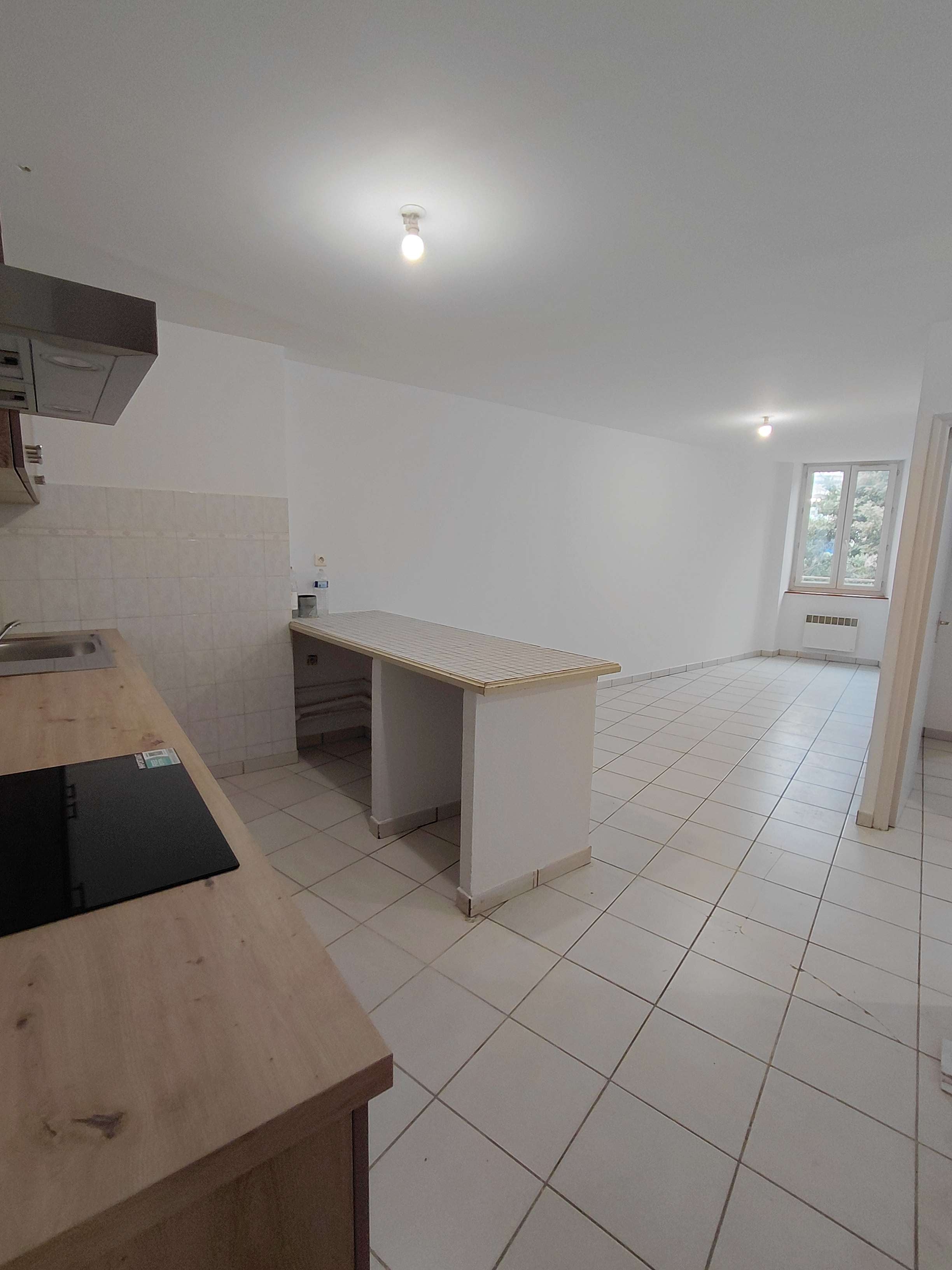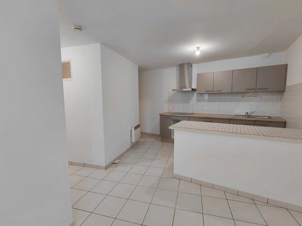 Appartement de type 2 comprenant un hall d'entrée, une pièce à vivre avec une cuisine neuve meublée et équipée; une chambre avec placard, une salle de bain et un wc