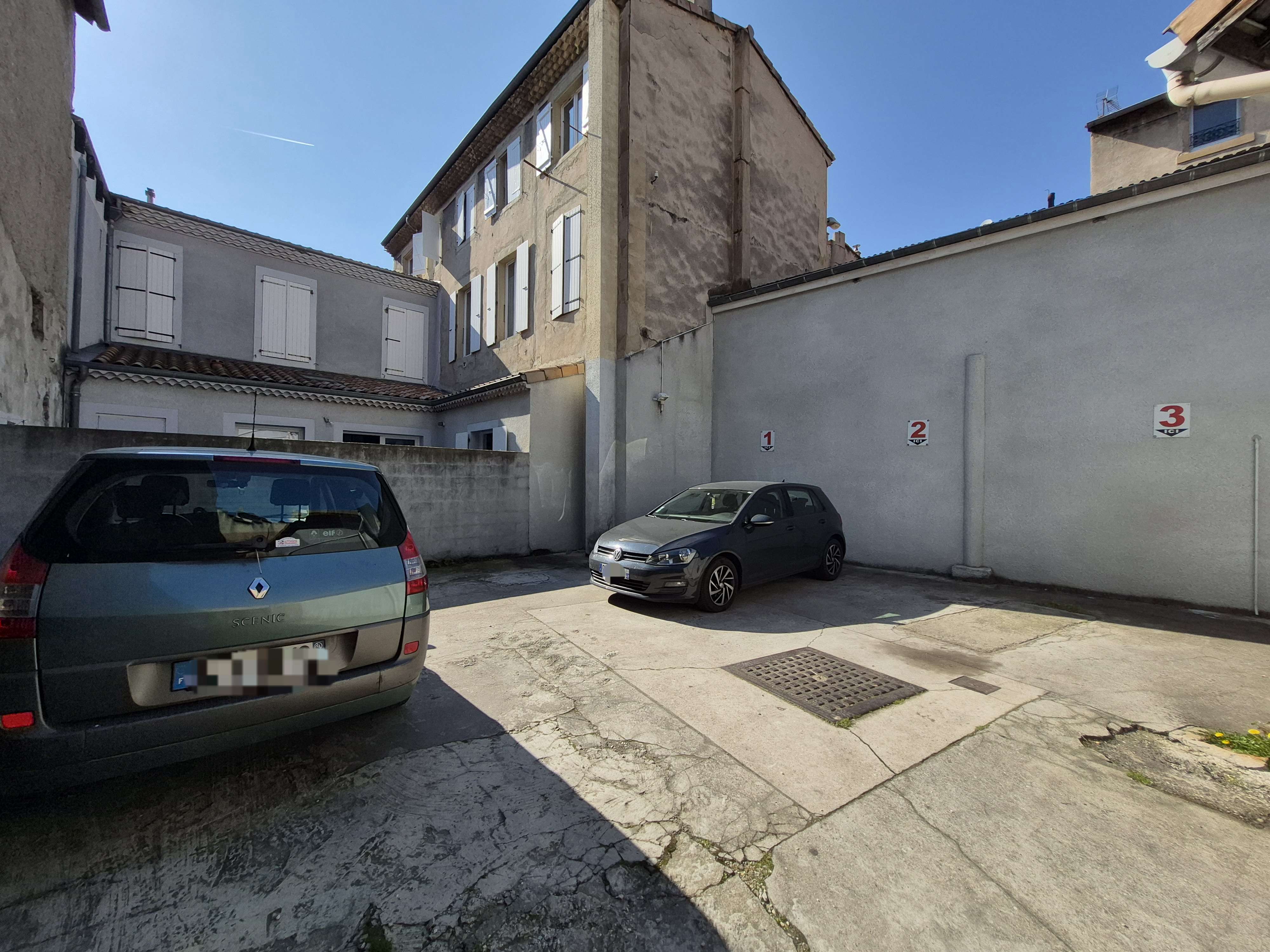 A l'éxtérieur au rez-de-chaussée, dans une cour fermée par un portail motorisé, 3 places de parking louées.