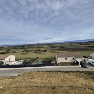 Construite sur vide sanitaire et conforme à la réglementation RT2012, cette maison propose une organisation fonctionnelle et agréable à vivre, tout en offrant une vue dégagée sur le Massif du Vercors.